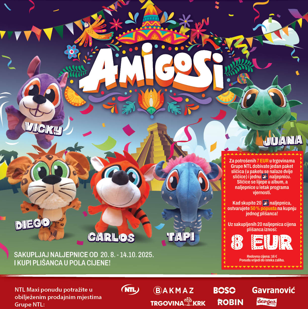 • Uz sakupljenih 20 naljepnica cijena jednog plišanca iznosi 8 EUR